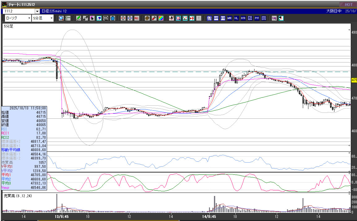 | 2025/10/13 | 11:15 | 46700 | 46715 | 46620 | 46695 | 4129 | 95 | -5 |