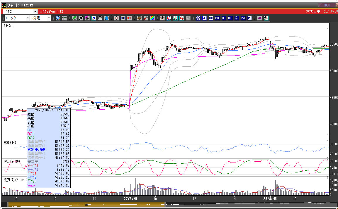 | 2025/10/27 | 9:15 | 50325 | 50390 | 50270 | 50365 | 22811 | 120 | 40 |