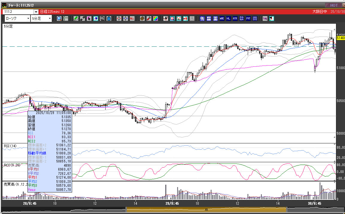 | 2025/10/29 | 13:00 | 51300 | 51330 | 51125 | 51155 | 12419 | 205 | -145 |