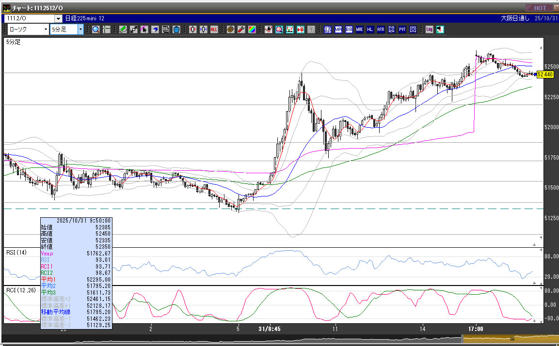 | 2025/10/31 | 10:15 | 52120 | 52150 | 51965 | 52075 | 16708 | 185 | -45 |