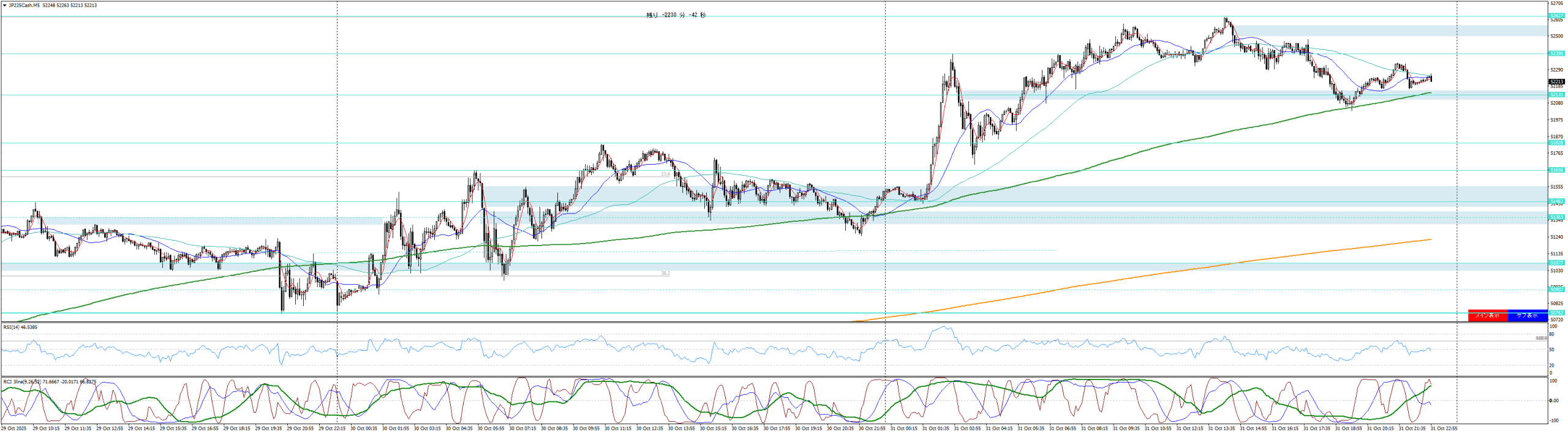 | 2025/10/31 | 10:00 | 52225 | 52280 | 52040 | 52120 | 23577 | 240 | -105 |