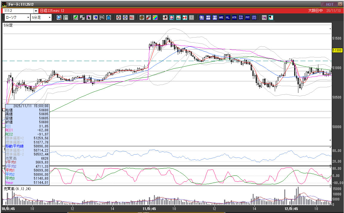 | 2025/11/11 | 13:00 | 51145 | 51160 | 51085 | 51110 | 5298 | 75 | -35 |