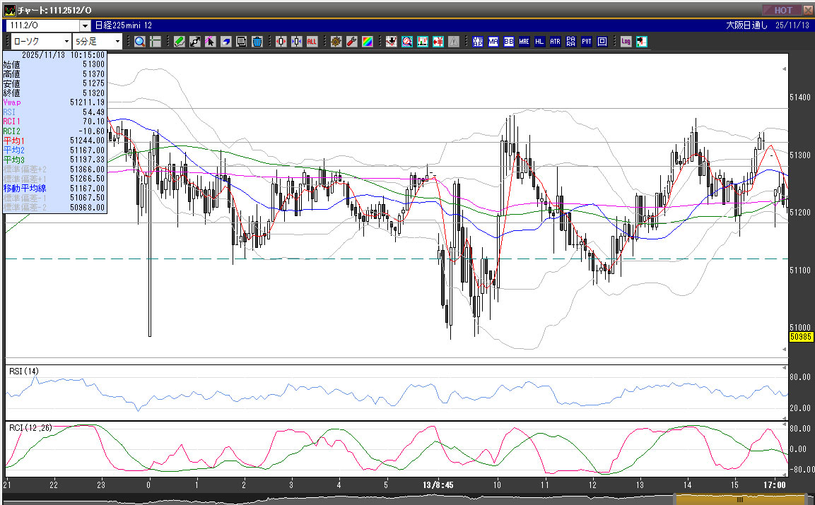| 2025/11/13 | 9:30 | 51055 | 51140 | 50985 | 51120 | 15004 | 155 | 65 |