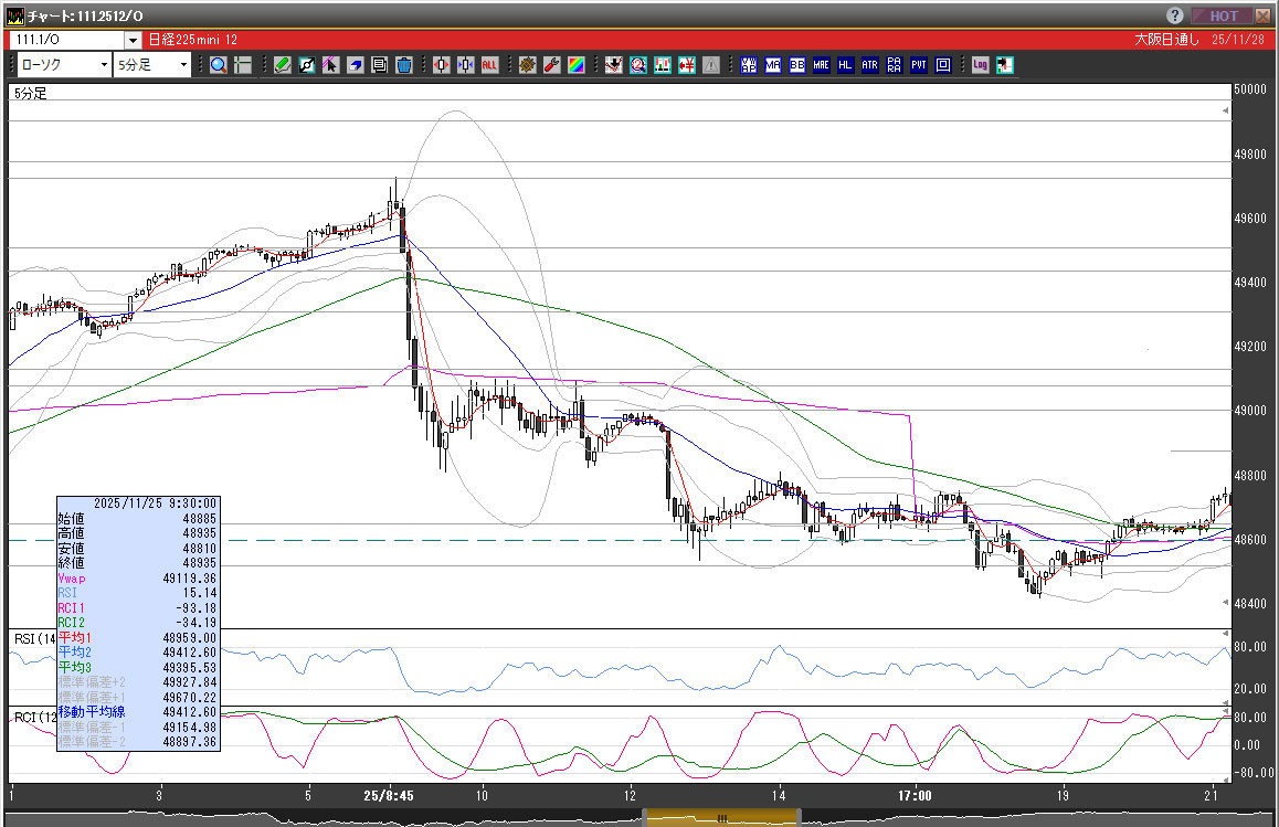 | 2025/11/25 | 9:15 | 49000 | 49065 | 48820 | 48890 | 22547 | 245 | -110 |