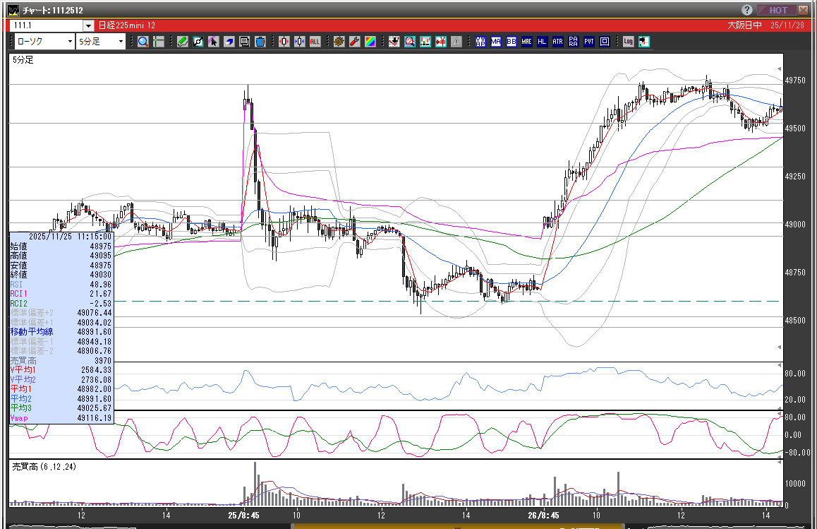 | 2025/11/25 | 12:00 | 48990 | 49000 | 48955 | 48985 | 3004 | 45 | -5 |
