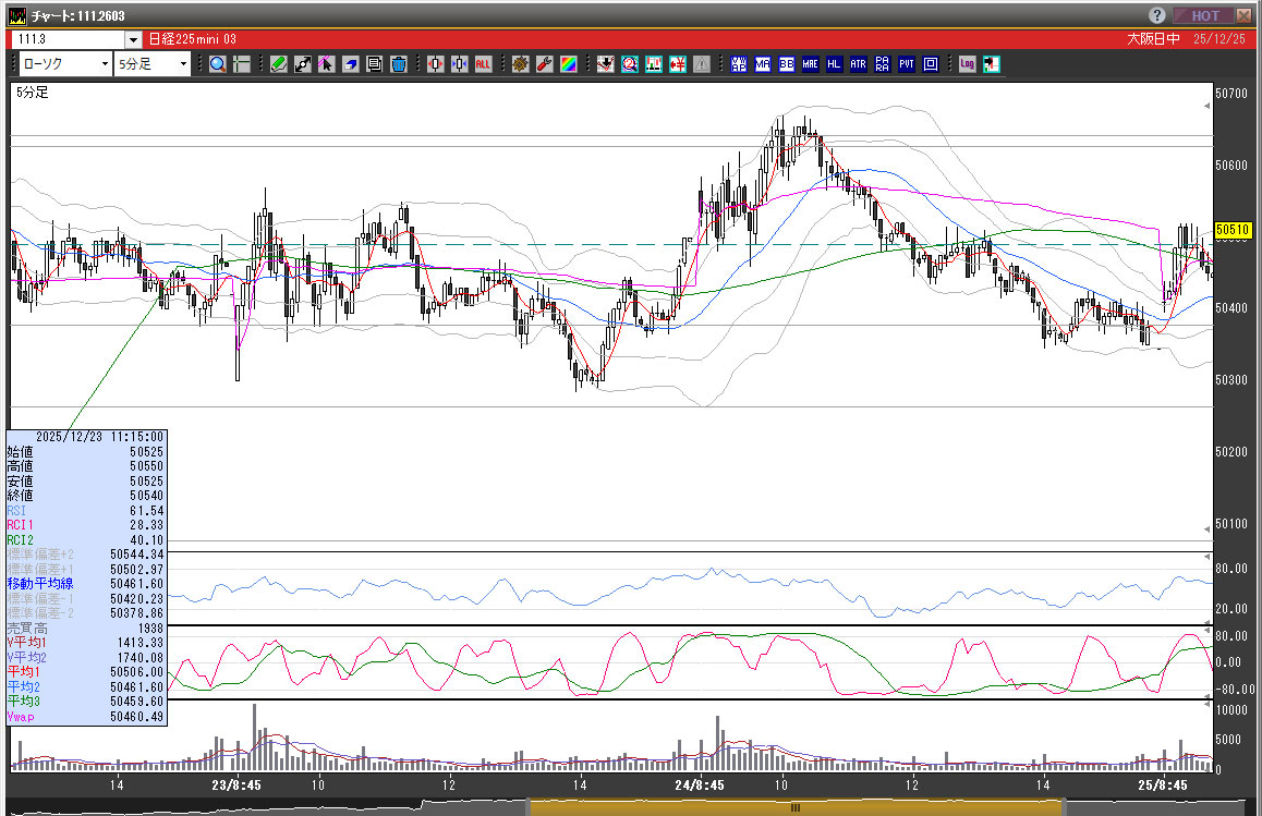 | 2025/12/23 | 12:00 | 50435 | 50445 | 50400 | 50430 | 1780 | 45 | -5 |