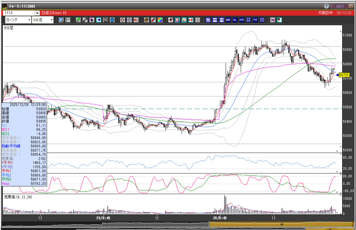 | 2025/12/26 | 10:00 | 50790 | 50900 | 50740 | 50885 | 9531 | 160 | 95 |
