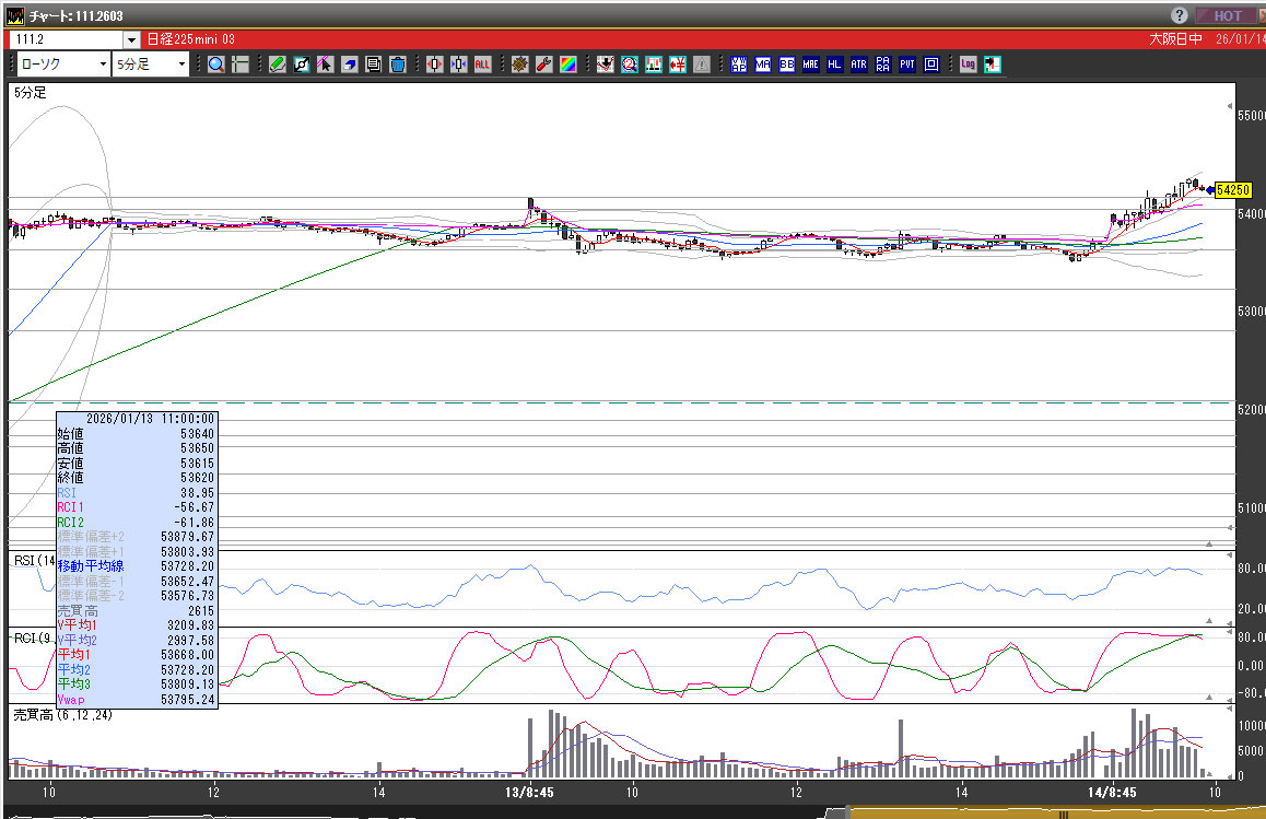 2026/1/13(火)日経225先物/トレード結果/チャート分析