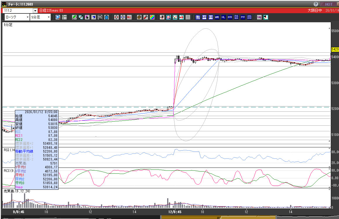 2026/1/12(月)日経225先物/トレード結果/チャート分析