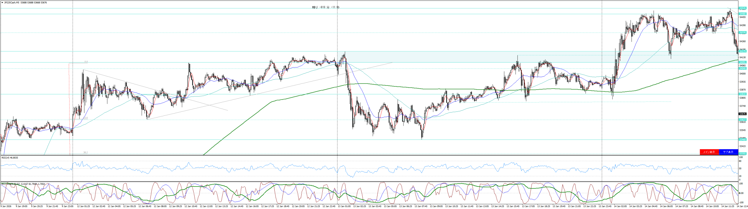 | 2026/01/12 | 14:00 | 53795 | 53815 | 53695 | 53750 | 5123 | 120 | -45 |