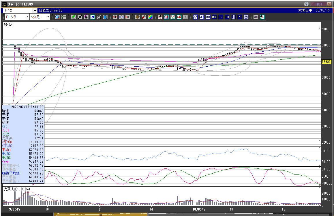 | 2026/02/09 | 10:15 | 57040 | 57100 | 56915 | 56945 | 20207 | 185 | -95 |