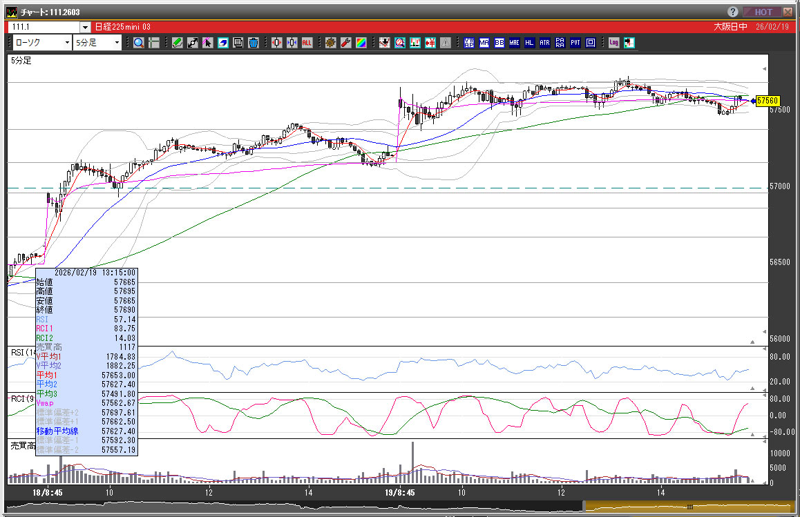 | 2026/02/19 | 10:45 | 57580 | 57600 | 57530 | 57575 | 3409 | 70 | -5 |