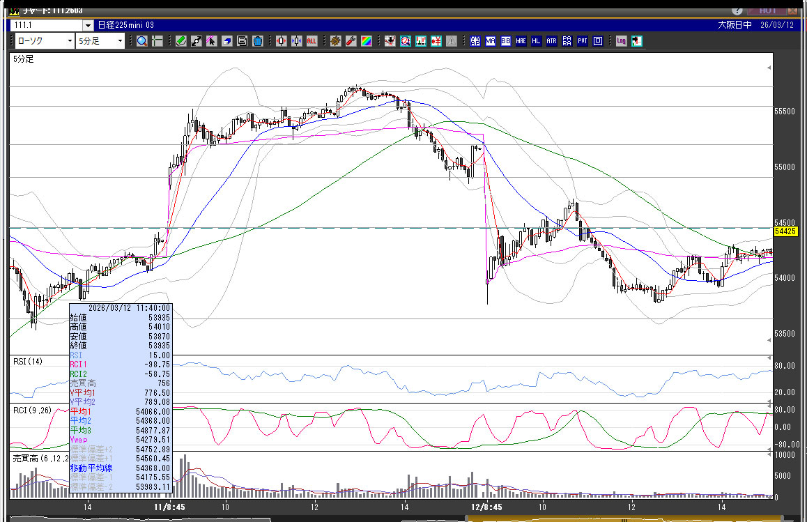 2026/3/12(木)日経225先物/トレード結果/チャート分析