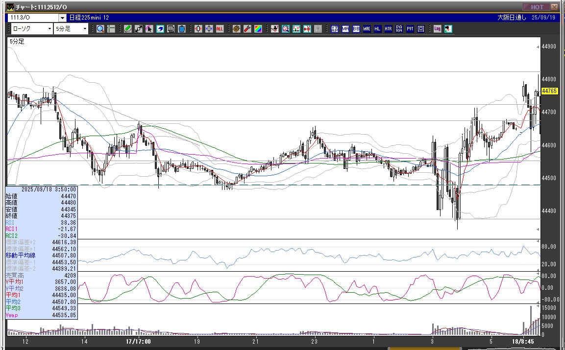 | 2025/09/18 | 3:30 | 44595 | 44605 | 44380 | 44425 | 11546 | 225 | -170 |