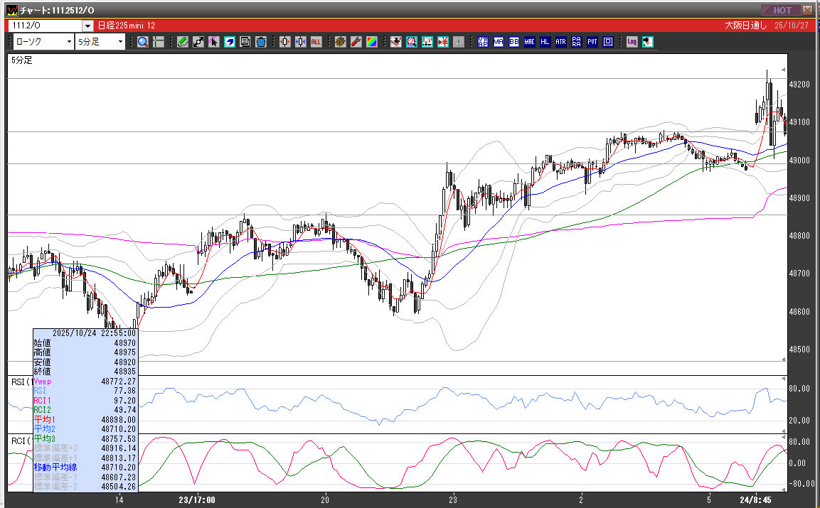 2025/10/23(木)夜間(10/24)日経225先物/トレード結果/チャート分析