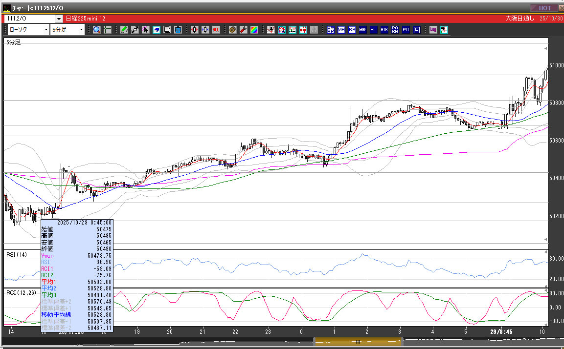 2025/10/28(火)夜間(10/29)日経225先物/トレード結果/チャート分析