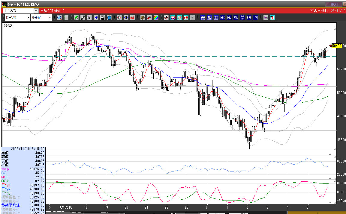 2025/11/7(金)夜間(11/10)日経225先物/トレード結果/チャート分析