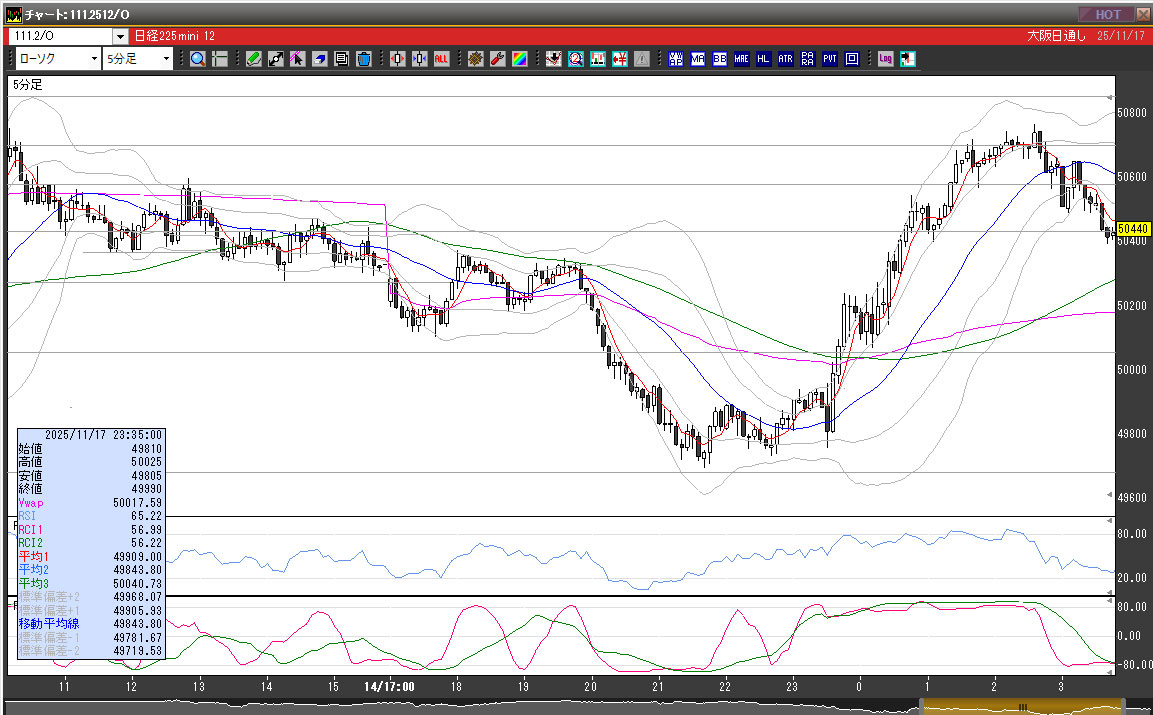 2025/11/14(金)夜間(11/17)日経225先物/トレード結果/チャート分析