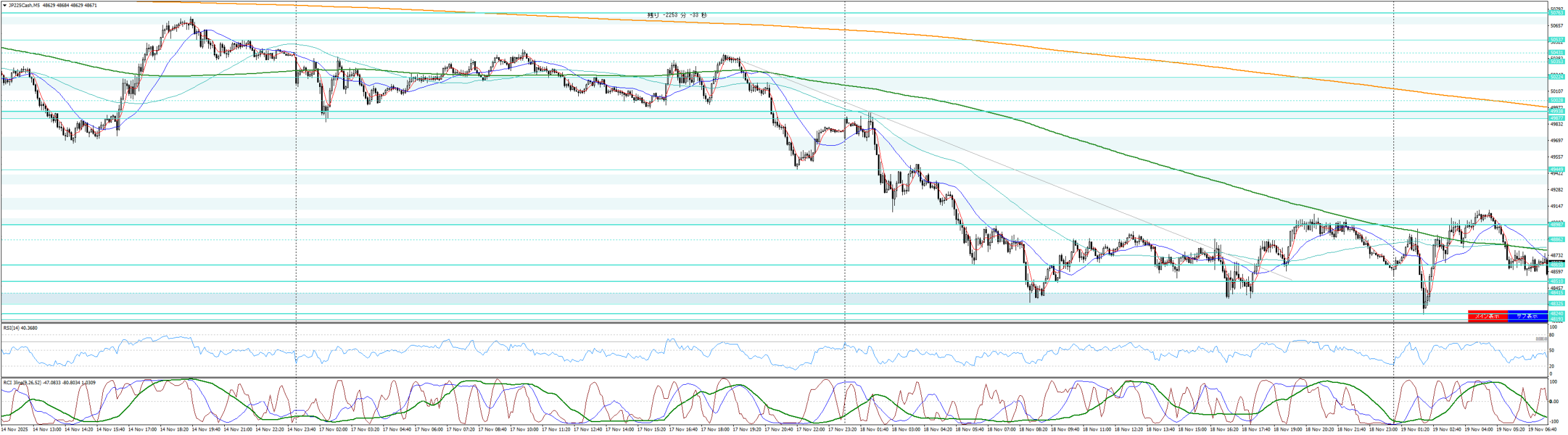 | 2025/11/18 | 4:30 | 49845 | 49870 | 49645 | 49720 | 5246 | 225 | -125 |