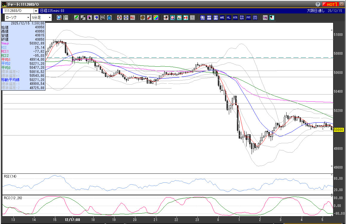 2025/12/12(金)夜間(12/15)日経225先物/トレード結果/チャート分析