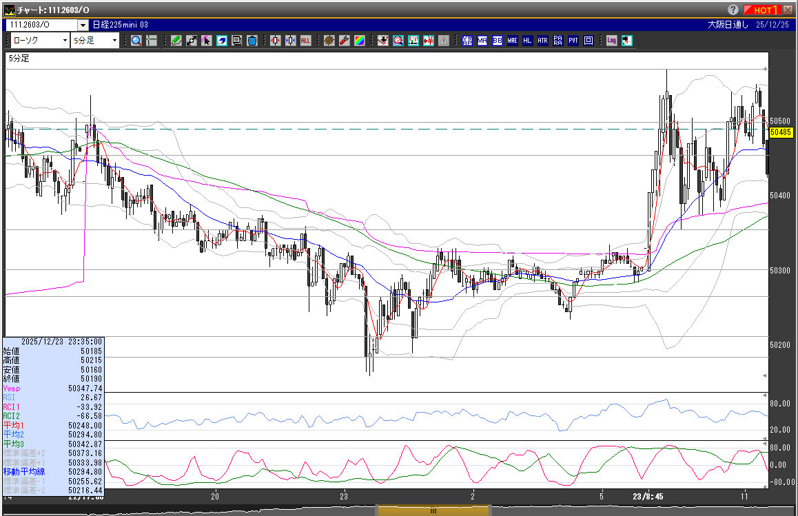 2025/12/22(月)夜間(12/23)日経225先物/トレード結果/チャート分析