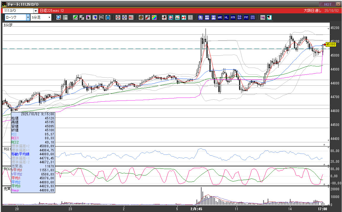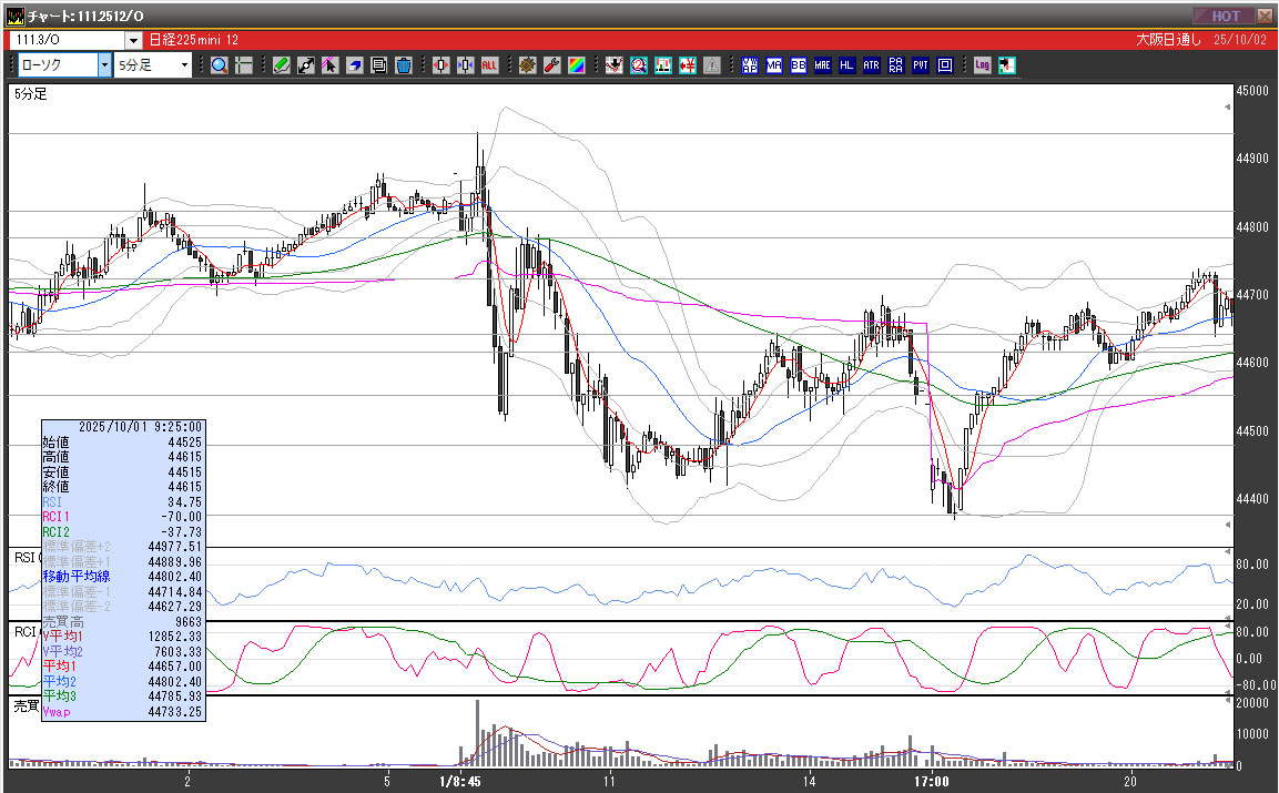 2025/10/1(水)夜間(10/2)日経225先物/トレード結果/チャート分析