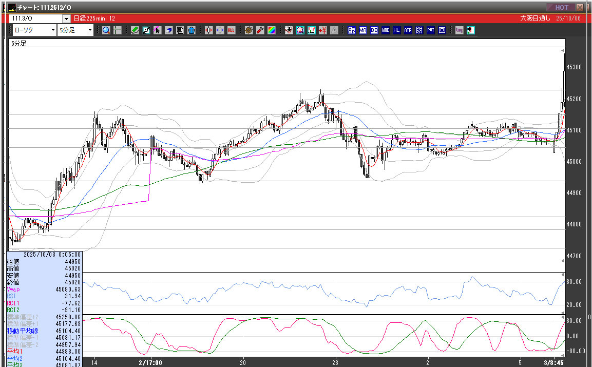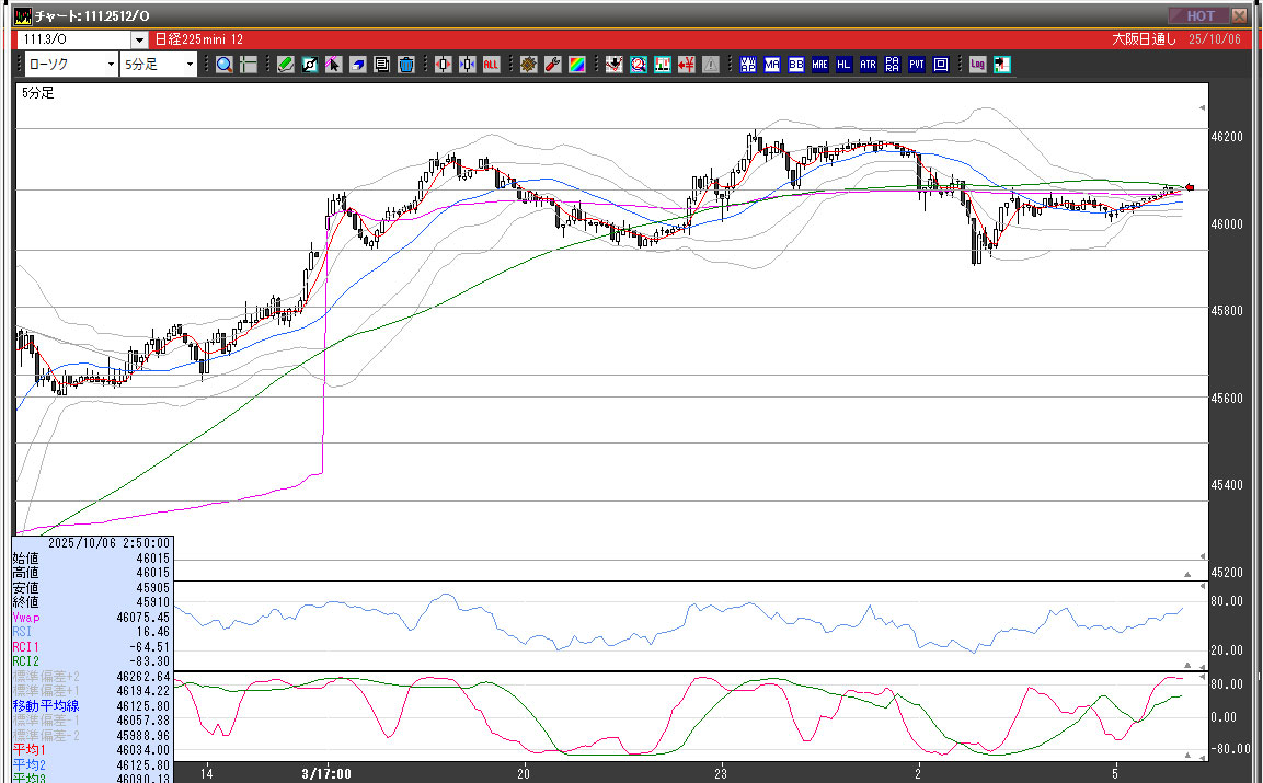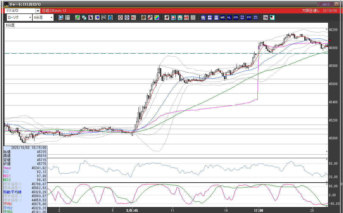 2025/10/3(金)夜間(10/6)日経225先物/トレード結果/チャート分析