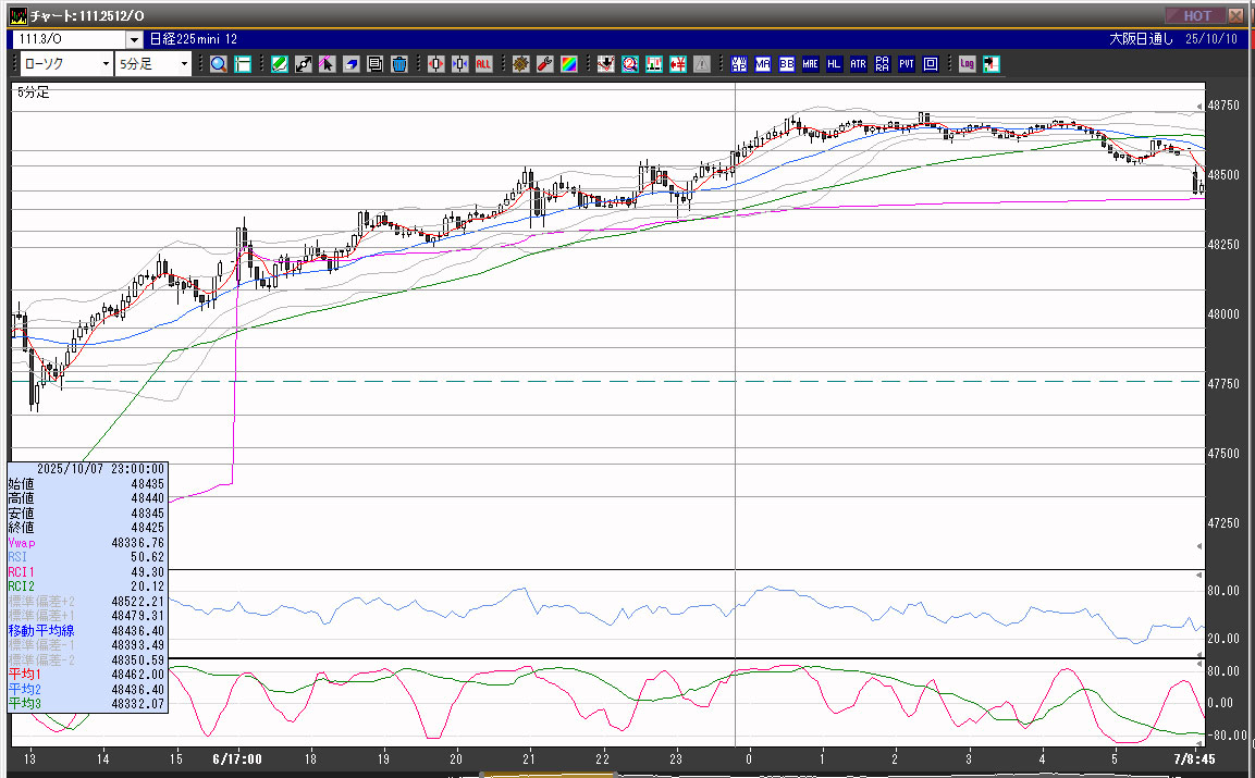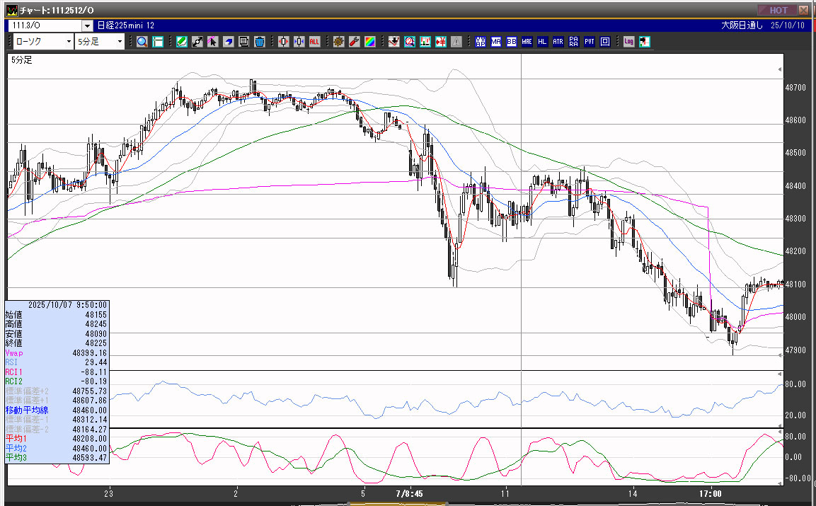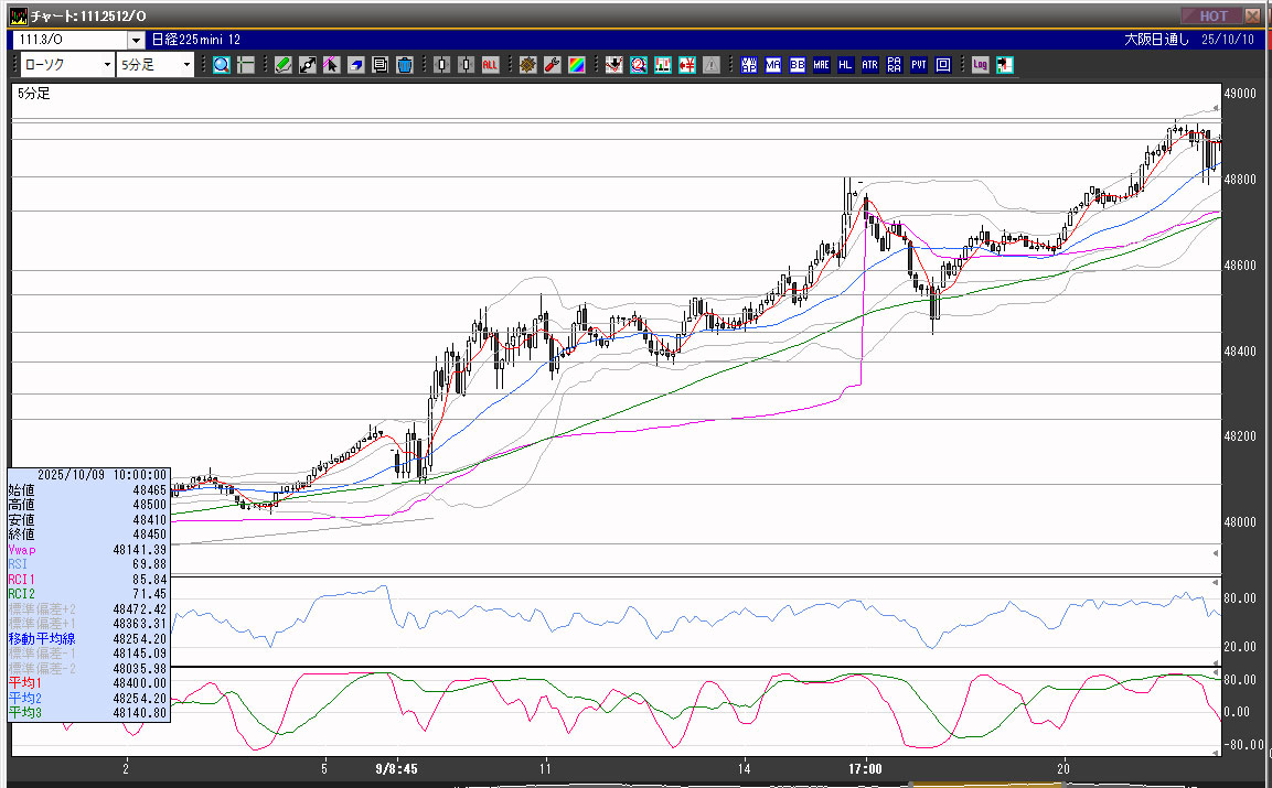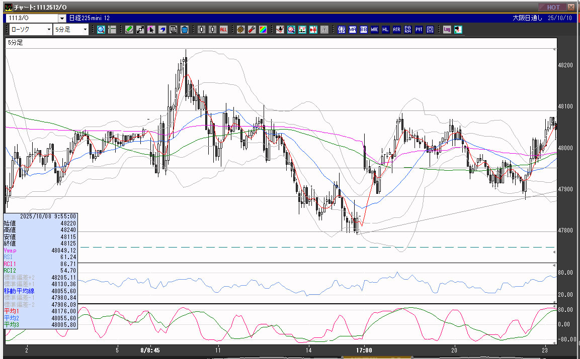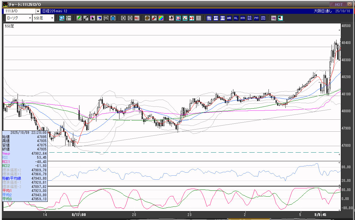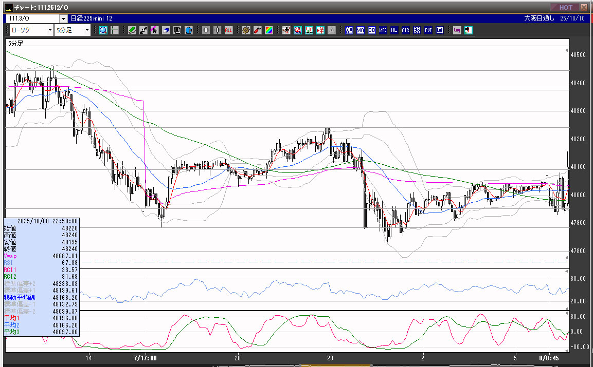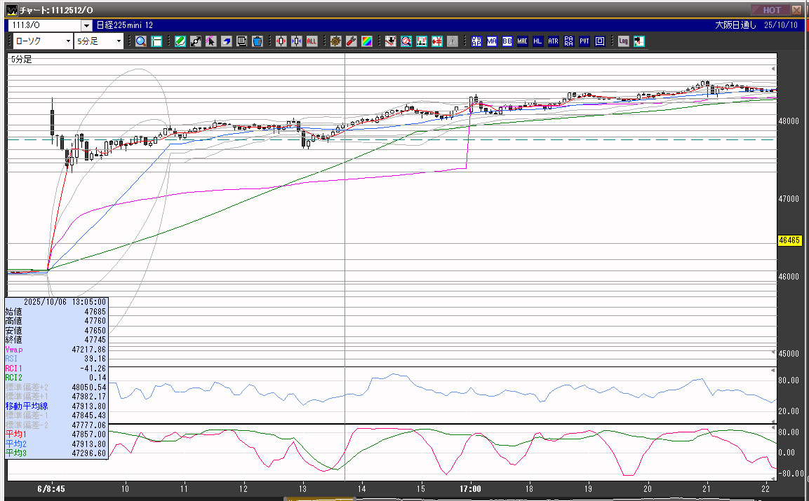 2025/10/8(水)夜間(10/9)日経225先物/トレード結果/チャート分析